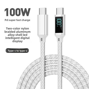100w pd सुपर फास्ट चार्ज टू-कलर नायलॉन ब्रेडेड एल्यूमीनियम मिश्र धातु शेल का नेतृत्व बुद्धिमान डिजिटल डिस्प्ले टाइप-सी डेटा ट्रांसफर